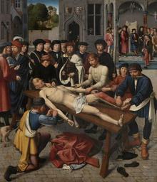 Keywords: Gerard David - The Judgment of Cambyses, panel 2 - The shedding of the corrupt judge Sisamnes.jpg Artwork Creator Gerard David The Judgment of Cambyses Het oordeel van Cambyses Justice diptych for the Council Chamber of Bruges Town Hall Panel 2 - According to an old Persian story sisamnes was a corrupt judge who was skinned alive on the orders of King Cambyses The judicial throne from which Otanes Sisamnes' son and successor was henceforth to dispense justice is covered by skin Gerechtigheidsdiptiek voor de schepenzaal van het stadhuis in Brugge Paneel 2 - Volgens een oud Perzisch verhaal was Sisamnes een corrupte rechter die op bevel van koning Cambyses levend gevild werd Rechts bovenaan het paneel zetelt Otanes als rechter op de huid van zijn vader Diptyque de justice commandé pour la salle des échevins de l'hôtel de ville de Bruges deuxième panneau D'après un ancien récit persan Sisamnès était un juge corrompu qui fut condamné à être écorché vif sur ordre du roi Cambysse 1498/1499 Oil panel cm 202 172 8 institution Groeningemuseum object history credit line accession number GRO0041 I 1 http //www aiwaz net/panopticon/flaying-of-the-corrupt-judge-sisamnes/gi1167c161 aiwaz net<br/>2 http //www lukasweb be/en/photo/the-judgement-of-cambyses-5 Lukas - Art in Flanders VZW PD-old-100-1923 DEFAULTSORT Gerard David The Judgment of Cambyses Part 2 The Judgment of Cambyses by Gerard David b Death penalty Torture in art Portraits from Norbert Schneider The Art of the Portrait 122 |