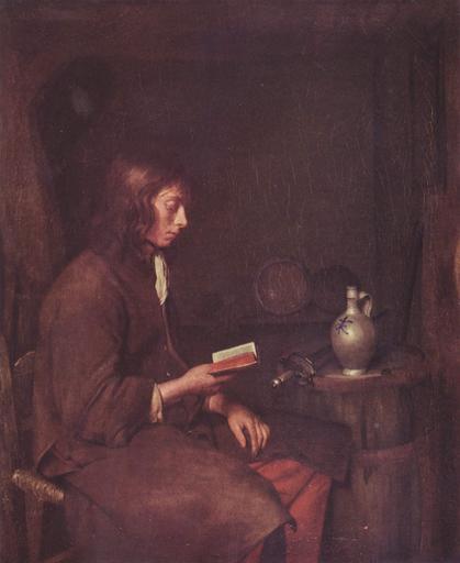 | Keywords: Gerard ter Borch d. J. 008.jpg Artwork title Der Lesende Young man reading ca 1675 oil canvas cm 42 9 36 5 Staatliches Museum Gemäldegalerie Schwerin Genre works The Yorck Project 10 000 Meisterwerke der Malerei DVD-ROM 2002 ISBN 3936122202 Distributed by DIRECTMEDIA Publishing GmbH en 2nd third of 17th century Creator Gerard ter Borch d J http //mail wikipedia org/pipermail/wikide-l/2005-April/012195 html Other versions PD-old-100 PD-Art-YorckProject Dutch paintings in the Staatliches Museum Schwerin Paintings of sitting men reading indoors Baroque paintings of men Oil paintings of men Genre paintings by Gerard ter Borch II |