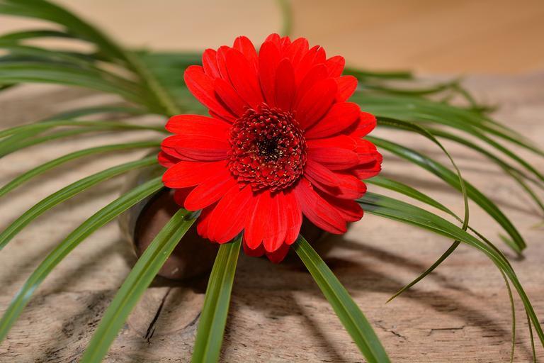 Keywords: gerbera flower blossom bloom grass red plant close schnittblume decoration