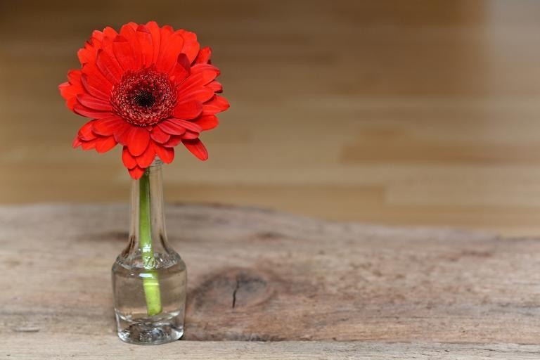 Keywords: gerbera red red flower plant flower blossom bloom vase deco close text freedom