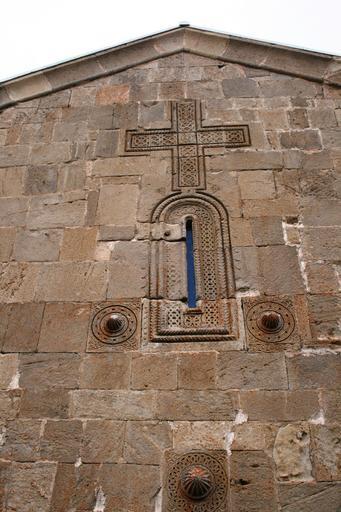 Keywords: Gergeti Trinity Church cross relief.jpg en Gergeti Trinity Church cross relief photograph 2008-09 Kober Commonist Gergeti Trinity Church stone carving Crosses in Georgia