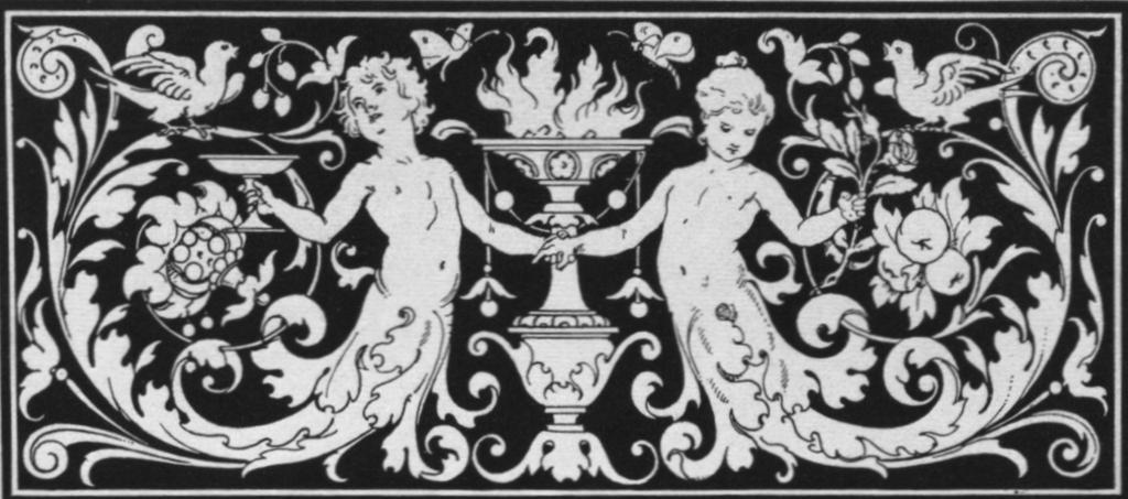 | Keywords: Gerlach, Martin, Allegorie des Lebens.jpg Allegorie Buchillustration 1882 Ausschnitt Allegorie des Lebens <br /> Auf einem prunkvollen kunstvoll gedrechselten Kandelaber lodert in einer Schale ein züngelndes Feuer das Symbol des Lebens Um den Feuerständer schlängeln sich zwei fast gegengleiche Volutenranken Sie entspringen wie der Schwanz eines Fischleibs aus dem Körper eines Knaben mit Trinkschale und eines Mädchens mit einem Rosenzweig die wie zum Ringelreihen Händchen halten Der Unterleiber der Kinder münden in eine reich gezackte Akanthusranke das sich spiralig zu einer Volute ringelt und am Ende eine Prachtblüte bzw zwei Äpfel trägt beides Symbole des Wachstums und damit des Lebens Die Ranke verzweigt sich mehrmals und läuft zu den Ecken des Bildes nochmals in Voluten aus Auf den oberen Rankenbögen zwitschern fröhlich zwei Tauben Sie sind nicht nur Symbole des Friedens sondern auch der Liebe und der Fortpflanzung die das Leben im Gang hält Zwei Schmetterlinge Sinnbilder von Auferstehung und Unsterblichkeit flattern in gefährlicher Nähe um das Feuer und symbolisieren so auch die Gefahren des Lebens Martin Gerlach Allegorien und Embleme Abtheilung Allegorien Wien 1882 N° 30 Martin Gerlach 1846-1918 1882 PD-old Rinceaux Graphic ornaments Allegories Martin Gerlach senior |