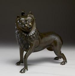 | Keywords: German - Aquamanile in the Form of a Lion - Walters 5325 - Three Quarter.jpg Aquamanilia or water pitchers present an interesting case of intercultural exchange across great distances This type of vessel is a small closed water pourer often shaped as an animal or mythological creature The form developed in the ancient Near East and many of the animals shown whether real or mythical also derive from Near Eastern prototypes lions were particularly favored This unusual example bears a Hebrew inscription on one side that reads Blessed be the King of the Universe who has instructed us to wash our hands indicating that it served a ceremonial function either in a Jewish home or synagogue Whether this inscription is original to this piece or added later it attests to the diverse cultural communities served by the same type of object late 13th or early 14th century Late Medieval brass H 9 1/8 x L 10 5/8 x D 5 1/16 in 23 2 x 27 x 12 9 cm accession number 53 25 19407 Stein Sale Paris 1899 no 139 Henri Daguerre Paris by purchase Henry Walters 1927 by purchase Walters Art Museum Henry Walters Acquired by Henry Walters 1927 Translation Blessed be God King of the Universe who blessed us and instructed us to wash our hands Baruch ata adonai alokhenu meleh Ha-olam asher Ridshanu bemitsvotsar vetsivanu al netilas yadayim Highlights from the Collection The Walters Art Gallery Baltimore 1998-2001 place of origin Flanders Belgium Walters Art Museum license Medieval metalwork in the Walters Art Museum German art in the Walters Art Museum Media contributed by the Walters Art Museum needs category review Media contributed by the Walters Art Museum needs artist review |