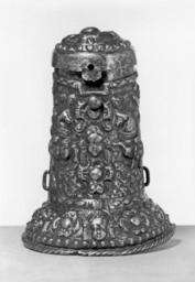| Keywords: German - Cartridge Box - Walters 51562.jpg Beginning in the 1500s pre-measured paper-wrapped charges were used by foot soldiers and cavalry They were carried in special water-resistant containers Boxes of this type were worn on the front of the thigh for easy access by a horseman reloading his wheel-lock firearm The embossed relief of two Turks fighting was created by the repoussé technique hammering from the back between 1570 1580 iron wood cm 13 5 accession number 51 562 7529 Clements Henry Griffith Keasbey New York date and mode of acquisition unknown Sale American Art Association New York December 5 1924 no 21 Henry Walters Baltimore 1924 mode of acquisition unknown Walters Art Museum Henry Walters Acquired by Henry Walters 1924 place of origin Brunswick Germany Walters Art Museum license Baroque art in the Walters Art Museum Weapons in the Walters Art Museum German art in the Walters Art Museum Cavalry equipment Cartridge boxes historical Early Modern firearms |