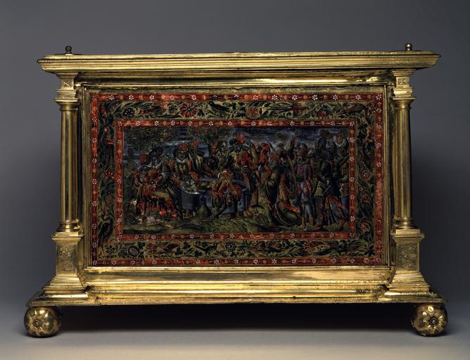 | Keywords: German - Casket with the Story of the Prodigal Son - Walters 464 - Side A.jpg  The coats of arms on the lid indicate that the casket was a gift to Viktor von Gumppenberg zu Schenkenau governor of Schrobenhausen at his wedding on February 4 1560 He was in the service of Duke Albrecht V of Bavaria and his wife was a lady-in-waiting to the duchess The parable chosen for the decoration reminded the nobleman that it was time to abandon idle leisure for the duties of married life The narrative panels in reverse-painted glass provide the chief ornament of the casket; they are complemented by graceful decorative borders of little birds entwined in foliage setting off the gilded-metal armature framework of the casket itself 1560 Renaissance amelierung reverse painted glass gilt on copper and resins cm 19 8 29 3 accession number 46 4 19572 Raoul Heilbronner Henry Walters Baltimore date and mode of acquisition unknown Walters Art Museum Henry Walters Acquired by Henry Walters place of origin Augsburg Germany Walters Art Museum license Renaissance applied arts in the Walters Art Museum German art in the Walters Art Museum 16th-century way of life preserved artefacts Media contributed by the Walters Art Museum needs category review Media contributed by the Walters Art Museum needs artist review |
