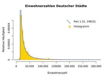 | Keywords: German Cities Pareto Density - de.svg de Rohdaten von File Powercitiesrp png visualisiert als Histogramm mit passender Pareto-Verteilung Wahrscheinlichkeitsdichte 2011-06-17 own Accountalive cc-zero Uploaded with UploadWizard Pareto distribution |
