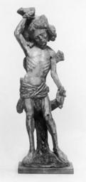 Keywords: German - Devotional Statuette of Saint Sebastian - Walters 61116.jpg Inexpensive painted wooden statuettes of the Virgin or popular saints were made in large numbers to stimulate private devotion Sebastian was a Christian martyr of the 3rd century According to legend he was a Roman officer who refused to deny his Christian faith In consequence he was tied to a tree and shot full of arrows When these wounds were not fatal he was clubbed to death Christians prayed to him for protection from wounds and illness especially the plague The crudeness of the carving would not affect the role of the statuette as an aide to devotion The stiffness and emaciation of the figure suggest that the carver was either German or influenced by German models ca 1500 Early Modern carved oak with paint cm 38 5 12 6 8 accession number 61 116 7251 Joachim Ferroni Rome Ferroni Sale Galleria Sangiorgi Rome 1909 no 46 Henry Walters city Baltimore Walters Art Museum Henry Walters Acquired by Henry Walters place of origin Germany Walters Art Museum license Renaissance sculpture in the Walters Art Museum German art in the Walters Art Museum Media contributed by the Walters Art Museum needs category review Statues of Saint Sebastian in the United States |