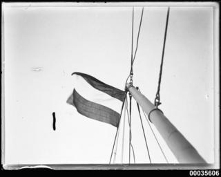 | Keywords: hood collection hoodcollection samuel j hood collection samueljhoodcollection merchant vessel merchantvessel foreign vessel foreignvessel maritime activity maritimeactivity barque sydney harbour sydneyharbour harbour scenes harbourscenes magdalene vinnen magdalenevinnen woolloomooloo german flag germanflag flag imperial flag imperialflag nazi republican flag republicanflag rudolf asmis rudolfasmis asmis blackandwhite monochrome photo border black and white In January 1933, as the Nazi Party assumed power in Germany, the German Republican flag, the Bundesflagge und Handelsflagge, with its black-red-gold tricolour was discarded as the national flag. On 12 March, the German government established two legal national flags, the black-white-red Imperial tricolour flag and the swastika flag of the Nazi Party. This photograph marks this historic moment. It was taken on the morning of the 23 March, after the German Consul-General Dr Rudolf Asmis received instruction from the German government to hoist the Imperial flag in place of the old Republican flag. On 24 March, the 'Sydney Morning Herald' reported on the event, noting that the Republican flag had been taken down at sunset on 22 March and the Imperial flag was then hoisted 'in the presence of the entire ship's company' ['SMH', 24 March 1933, p 9]. This photo is part of the Australian National Maritime Museum’s Samuel J. Hood Studio collection. Sam Hood (1872-1953) was a Sydney photographer with a passion for ships. His 60-year career spanned the romantic age of sail and two world wars. The photos in the collection were taken mainly in Sydney and Newcastle during the first half of the 20th century. The ANMM undertakes research and accepts public comments that enhance the information we hold about images in our collection. This record has been updated accordingly. Photographer: Samuel J. Hood Studio Collection Object no. 00035606 In January 1933, as the Nazi Party assumed power in Germany, the German Republican flag, the Bundesflagge und Handelsflagge, with its black-red-gold tricolour was discarded as the national flag. On 12 March, the German government established two legal national flags, the black-white-red Imperial tricolour flag and the swastika flag of the Nazi Party. This photograph marks this historic moment. It was taken on the morning of the 23 March, after the German Consul-General Dr Rudolf Asmis received instruction from the German government to hoist the Imperial flag in place of the old Republican flag. On 24 March, the 'Sydney Morning Herald' reported on the event, noting that the Republican flag had been taken down at sunset on 22 March and the Imperial flag was then hoisted 'in the presence of the entire ship's company' ['SMH', 24 March 1933, p 9]. This photo is part of the Australian National Maritime Museum’s Samuel J. Hood Studio collection. Sam Hood (1872-1953) was a Sydney photographer with a passion for ships. His 60-year career spanned the romantic age of sail and two world wars. The photos in the collection were taken mainly in Sydney and Newcastle during the first half of the 20th century. The ANMM undertakes research and accepts public comments that enhance the information we hold about images in our collection. This record has been updated accordingly. Photographer: Samuel J. Hood Studio Collection Object no. 00035606 |