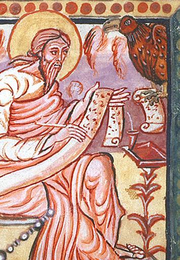| Keywords: German - Leaf from Gospels - Walters W4178V - Reverse Detail.jpg  During the Carolingian period the emulation of Roman classical models provided an opportunity to re-explore the naturalistic rendering of figures after a period of extreme schematization The influence of ancient prototypes is particularly evident in the portrayals of the Evangelists which were modeled on portraits of classical philosophers In this gospel book made in Freising Germany around 875 the Evangelist John sits on a stool in an open landscape In his left hand he holds the end of a long scroll on which he writes with his right hand An inkpot rests on the desk in front of him while an eagle his symbol holds in its talons another scroll inscribed with God's words The choice of a scroll rather than a codex is a clear allusion to ancient philosophers even though here the Evangelist writes across the width of a scroll as in a book and not down the length of the scroll as in Antiquity But unlike the sober stance seen in Antique depictions of philosophers here John is depicted in the frenzy of divine inspiration his pen running rapidly across the surface of the scroll The large colorful brushstrokes with which the artist built this scene contribute to the effect of rapt energy The interest in the decorative possibilities of line belies the naturalism of ancient prototypes while the drapery folds have little relationship to the body underneath ca 875 Medieval ink paint parchment cm 17 9 12 1 accession number W 4 178V 35282 Germany 19th century Leon Gruel and Robert Engelmann Paris late 19th-early 20th century mode of acquisition unknown Henry Walters Baltimore February 16 1917 mode of acquisition unknown Walters Art Museum Henry Walters Acquired by Henry Walters 1917 Illuminating the Word Gospel Books in the Middle Ages The Walters Art Museum Baltimore 2004 place of origin Freising Germany Walters Art Museum license 2D Miniatures of Saint John the Evangelist Walters MS W4 - Freising Gospels Location not applicable |