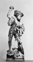 Keywords: German - Man Throwing a Stone - Walters 61137.jpg This finely carved figure of a man is dressed except for his fanciful hat as a mercenary soldier He is depicted throwing stones or possibly clods of earth or pieces of gnarled wood and is likely from a group representing the Stoning of Saint Stephen ca 1520 Early Modern oak wood paint cm 81 5 25 8 13 9 accession number 61 137 31631 Delannoy Sale Arnold Seligmann and Rey New York January 12 1922 Henry Walters city Baltimore Walters Art Museum 1931 by bequest Acquired by Henry Walters 1922 place of origin Swabia Germany Walters Art Museum license Renaissance sculpture in the Walters Art Museum German art in the Walters Art Museum Media contributed by the Walters Art Museum needs category review People throwing stones |