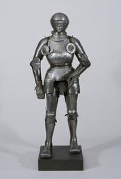 | Keywords: German - Maximilian Armor - Walters 51584.jpg Towards the end of the reign of Maximilian I as Holy Roman Emperor 1493-1519 a new style of armor emerged in Germany Sometimes called Maximilian armor it was in fashion from about 1510 until 1530 Its distinctive fluting gave it strength without increasing its already substantial weight a complete suit of armor weighed 40 to 50 pounds Though the elements of this suit are stylistically consistent they were assembled from more than one source An armored knight on horseback fought with a lance but one on foot fought with a sword ca 1510 1520 Renaissance steel Armor cm 166 75 52 7 accession number 51 584 25997 Hefner-Altneck Munich 1904 date and mode of acquisition unknown no 47 pl 14 Keasbey date and mode of acquisition unknown Henry Walters Baltimore 1925 mode of acquisition unknown Walters Art Museum Henry Walters Acquired by Henry Walters 1925 place of origin Germany Walters Art Museum license Renaissance applied arts in the Walters Art Museum German art in the Walters Art Museum Media contributed by the Walters Art Museum needs category review |