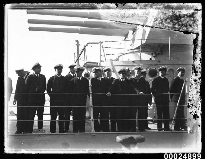 | Keywords: koln german cruiser germancruiser german naval visit navalvisit navy naval sydney harbour sydneyharbour samuel j hood collection samueljhoodcollection sydney cove sydneycove circular quay circularquay west circular quay westcircularquay crowds german navy germannavy officers sailors blackandwhite monochrome photo border black and white This photo is part of the Australian National Maritime Museum’s Samuel J. Hood Studio collection. Sam Hood (1872-1953) was a Sydney photographer with a passion for ships. His 60-year career spanned the romantic age of sail and two world wars. The photos in the collection were taken mainly in Sydney and Newcastle during the first half of the 20th century. The ANMM undertakes research and accepts public comments that enhance the information we hold about images in our collection. This record has been updated accordingly. Photographer: Samuel J. Hood Studio Collection Object no. 00024899 This photo is part of the Australian National Maritime Museum’s Samuel J. Hood Studio collection. Sam Hood (1872-1953) was a Sydney photographer with a passion for ships. His 60-year career spanned the romantic age of sail and two world wars. The photos in the collection were taken mainly in Sydney and Newcastle during the first half of the 20th century. The ANMM undertakes research and accepts public comments that enhance the information we hold about images in our collection. This record has been updated accordingly. Photographer: Samuel J. Hood Studio Collection Object no. 00024899 |