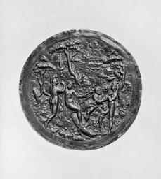 | Keywords: German - Plaque with the Judgment Of Paris - Walters 5580.jpg According to myth the shepherd Paris actually a prince of Troy was chosen to judge which of three goddesses--Hera goddess of marriage Athena wisdom and the military arts who wears a helmet and Aphrodite love --was the fairest They undressed to show their beauty and promised him rewards Paris chose Aphrodite who offered him as a wife the most beautiful woman on earth That was Helen already married to a Greek chieftain; her abduction by Paris resulted in the Trojan War Hans Jamnitzer produced many such round plaques of mythological subjects in bronze and lead This lead plaque softer and cheaper than bronze has been varnished to look like bronze ca 1575 Renaissance lead alloy cm 14 6 accession number 55 80 11798 Walters Art Museum 1954 by purchase Museum purchase with funds provided by the S A P Fund 1954 place of origin Nuremberg Germany Walters Art Museum license Renaissance applied arts in the Walters Art Museum Plaquettes German art in the Walters Art Museum Reliefs of Aphrodite Media contributed by the Walters Art Museum needs category review Media contributed by the Walters Art Museum needs artist review |