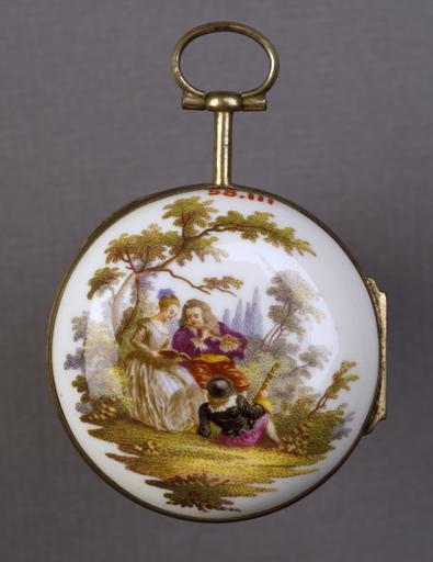 Keywords: German - Watch with a Scene of Musicians - Walters 58111.jpg Walters Art Museum artwork Anonymous German This watchcase is decorated with a scene of a man playing a flute a girl singing and a second man reclining holding the neck of a stringed instrument The composition is derived from L'Accord Parfait Perfect Accord ca 1719 by Antoine Watteau 1684-1721 now in the collection of the Los Angeles County Museum of Art AC1999 18 1 ca 1765 porcelain silver-gilt cm 4 6 accession number 58 111 35037 Anatole Demidoff Prince of San Donato 1812-1870 Tiffany and Company New York prior to 1893 mode of acquisition unknown on 1893 list no 42 Henry Walters Baltimore after 1893 mode of acquisition unknown Walters Art Museum Henry Walters Acquired by Henry Walters after 1893 place of origin Meissen Germany Walters Art Museum license German art in the Walters Art Museum Timepieces in the Walters Art Museum Meissen porcelain Pocket watches House of Demidov's collections 1760s jewellery 18th-century watches |