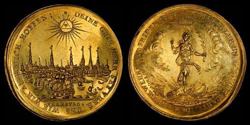 | Keywords: Germany-Hamburg-1679-Half Bankportugalöser-5 ducats.jpg Free imperial city of Hamburg Holy Roman Empire half-portugalöser 1679 http //www coinbooks org/esylum_v15n40a08 html Equivalent to five ducats Engraved by Johann Christoph Retke https //archive org/stream/biographicaldict05forriala/biographicaldict05forriala_djvu txt<br>Text reads as follows obverse DEINE Gà TE HERR SEY VBER UNS WIE WIR AUFF DICH HOFFEN Lord may thy kindness be with us just as we have hoped for and reverse GOTT LOB DER UNS SO Gà TIG LIEBT ¢ DEM KRIEGE WEHRT UND FRIDEN GIBT God loves our praise so graciously that he gives unto war first resistance then peace http //www cngcoins com/Coin aspx CoinID 200343 verbatim 1679 coin 2010 image National Numismatic Collection National Museum of American History Free imperial city of Hamburg Holy Roman Empire Use of this image should give credit to the National Numismatic Collection National Museum of American History other versions 2013030510011547 Assessments 1 Germany Hamburg half Portugalöser 1679 Anonymous-EU PD-1923 PD-USGov-SI currency 2015 User Godot13 NNC coins uploaded by User Godot13 Uploaded with UploadWizard Coins of Hamburg Holy Roman Empire Gold coins of the Holy Roman Empire Featured Pictures English Wikipedia by User Godot13 NNC coin Featured Pictures English Wikipedia |