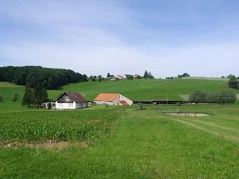 Keywords: germany landscape sky clouds forest trees woods houses barn farm rural rustic hills nature outside crops fields country countryside summer