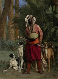 Keywords: Gérôme - The Negro Master of the Hounds.jpg Artwork Creator Jean-Léon Gérôme de Der Neger The Negro Master of the Hounds De zwarte hondenverzorger alternate title 1871 technique Oil canvas cm 33 25 Private collection object history credit line signed bottom right J L GEROME accession number http //www christies com/LotFinder/lot_details aspx intObjectID 5403387 PD-old-100-1923 Paintings of animals by Jean-Léon Gérôme Orientalist paintings by Jean-Léon Gérôme 1871 orientalist paintings Africans in 19th-century art 19th-century paintings of dogs Paintings of men with dogs Portrait paintings of standing men Sighthounds in art 1870s paintings from France Paintings with signatures lower right 1870s oil on canvas paintings 1870s paintings in private collections Paintings of people in nature Files by User BrokenSphere |