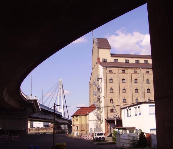 Keywords: Getreidespeicher Ludwigshafen 02.JPG en Ludwigshafen Germany Own Immanuel Giel 2008-06 Ludwigshafen-Mitte Kurt-Schumacher-Brücke Mannheim Brick granaries Granaries in Rhineland-Palatinate