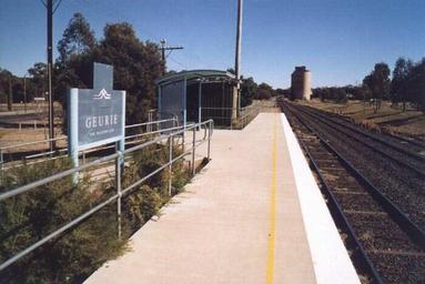 Keywords: 32 24S 148 50E Geurie railway station is located on the Main Western line in New South Wales, Australia. It serves the village of Geurie. Opened 1885. Rolfe Bozier