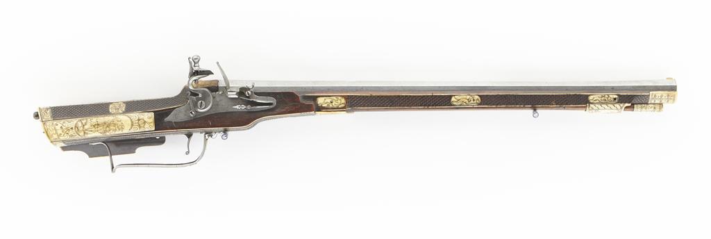 | Keywords: Gevär - Livrustkammaren - 96826.tif LSH artwork sv Åttsidig pipa med trumf 12 räfflor godstjocklek 6 2 mm <br/>Riktmedel Lång siktränna fram till ett inlaxat sikte saknas Inlaxat korn av mässing <br/>Fästning Pipan fäst i noten med två urspr tre stålstift samt krysskruven främre varbygelskruven <br/>Flintlås 1600-talets slut Plant låsbleck s-formig platt hane med fasade kanter motstöd på hanhalsen Fågelformig varhake Nöt utan studel <br/>Helstock av valnöt med urtag för hjullås senare igensatt och med urtag för ett mindre flintlås Fiskfjällsdekor och graverade beninläggningar På anslaget en skuren kartusch med hermer däri inlagt i ben St Göran och draken Bakplåt av ben med graverad stadsvy text SCHWEINFVRTH 1632 På kolvryggen benplatta med graverad text CHARL HÅRD TIL //SKiAeMLINGE FÅRS samt namnchiffer BCHK Framför benplattan inbränt C H Därintill ovanför kolvlådelocket en benplatta med adliga ätten Hård af Segerstads vapen Vid svansskruvbladet benplattor med graverad hare räv med gås i munnen samt signatur 'IM K Två låsskruvbrickor samt 2 x 3 pipstiftsbrickor med graverade djur 1+1 rörka med graverade jägare Näsband med växtdekor Kolvlådelock med bl a jägare med falk Skålad varbygel med hjärtformigt genombruten dekor vid främre stolpen <br/>Tillbehör <br/>Laddstock 1 681 mm med stålskoning i änden invändigt gängat rör 1 155 mm I andra änden benskoning 1 42 mm med samma dekor som på näsbandet I kolvlådan krats samt lindrev nr 18 819 original caption Gevär<br/> Nyckelord Flintlåsbössa ca 1630 walnut e3 - eldvapen - stock material valnöt - steel e127 - eldvapen - pipa lås och stockbeslag material stål - brass e4 - eldvapen - riktmedel material mässing - bone e8 - eldvapen - stockdekor material ben g 3520 size mm 685 pipa size mm 965 LRK Carl Hård af Segerstad Riksjägmästare Axel Hallin Bankdirektör CHARL HÅRD til SKiAeMLINGE FÅRS anv e3 - eldvapen - stock; Carl Hård af Segerstad Schweinfurth 1632 anv e3 - eldvapen - stock; Schweinfurth CHARL HÅRD til SKiAeMLINGE FÅRS anv e3 - eldvapen - stock; Carl Hård af Segerstad Schweinfurth 1632 anv e3 - eldvapen - stock; Schweinfurth place of origin original filename lm_dig10164 39478 inventory number LRK 2868 96826 CC-BY-SA Erik Lernestål <gallery caption Different images of same object > File Gevär - Livrustkammaren - 96472 tif </gallery> Wheellock musket images from Livrustkammaren Photographs of weapons by Erik Lernestål Media contributed by LSH dim-with multiple size templates Media contributed by LSH 2014-11 |