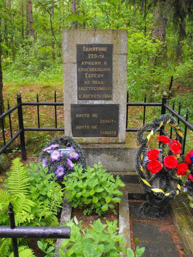 | Keywords: Ghetto Iuje 4b.jpg ru Памятник мемо иального комплекса на месте убийства 220 ев еев Ивье нацистами и полицаями 2 августа 1941 года аходится ядом с Ивье у де евни Стоневичи у очище Стоневичи у до оги H-6147 2012-06-15 own Vadim Akopyan 53 928197 25 810582 cc-zero Ghetto Iuje Uploaded with UploadWizard |