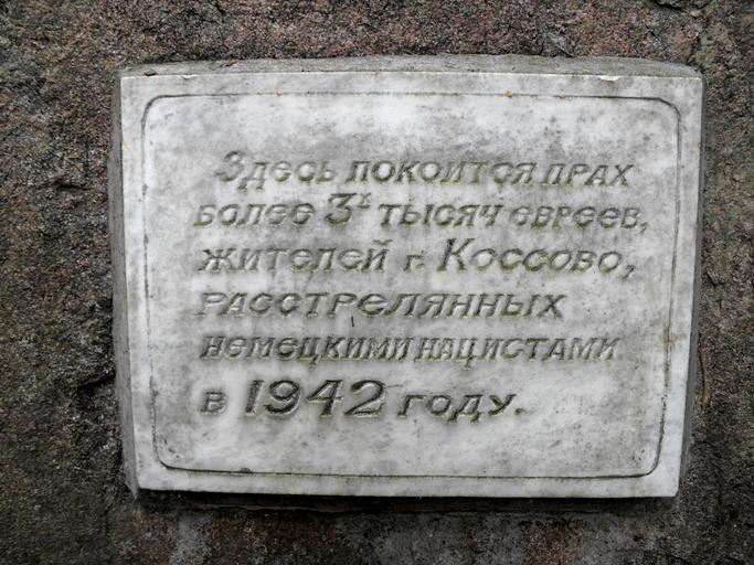 | Keywords: Ghetto Kossovo 1d.jpg ru Памятник на месте убийства нацистами в 1942 году ев еев из гетто Косово около и во дво це Пусловских кото ый асположен в у очище е ечёвщина о очовщина Установлен в 1992 году в 2007 п ик еплен госуда ственный знак Воинское захо онение 4724 Разме захо онения 15х15 мет ов Люди были убиты возле дво ца и внут и дво ца Тела видимо были пе енесены или пе евезены на го одище асположенное вблизи дво ца либо убийства п оходили и там а место убийства указывает табличка у подножия го одища Памятник находится на ве шине го одища на месте б атской могилы 2012-09-24 14 38 22 own Avner cc-zero Ghetto Kosava Uploaded with UploadWizard |