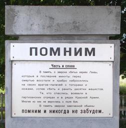 | Keywords: Ghetto Lakhva (Brest Region) 1c.jpg ru Памятник ев еям Лахвы восставшим в гетто п отив нацистов аходится на цент альной площади де евни 2014-05-10 10 41 51 own Avner 52 213162 27 101027 cc-zero Ghetto Lachva Luniniec District Uploaded with UploadWizard |