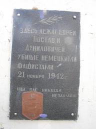 Keywords: Ghetto Pastavy 2c.jpg ru Памятник на месте массового убийства ев еев Постав и Дуниловичей во в емена Холокоста аходится в Поставах на улице Ленинской бывшая Б аславская нап отив дома 145 на те ито ии ДРСУ-132 где во в емя войны был железнодо ожный пе еезд 2012-07-29 own Avner cc-zero Ghetto Pastavy Uploaded with UploadWizard