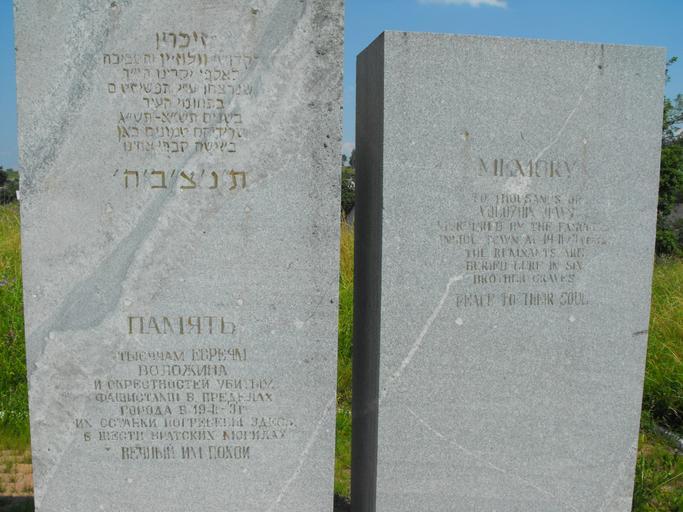 | Keywords: Ghetto Valozhyn 2d.jpg ru Памятник на ев ейском кладбище Воложина ев еям - узникам Воложинского гетто убитым в 1941-1943 годах и похо оненным на этом кладбище в нескольких б атских могилах 2012-07-08 own Avner 54 05 35 2 N 26 31 46 1 E heading E cc-zero Uploaded with UploadWizard Ghetto Valozhyn Jewish cemeteries in Valozhyn |