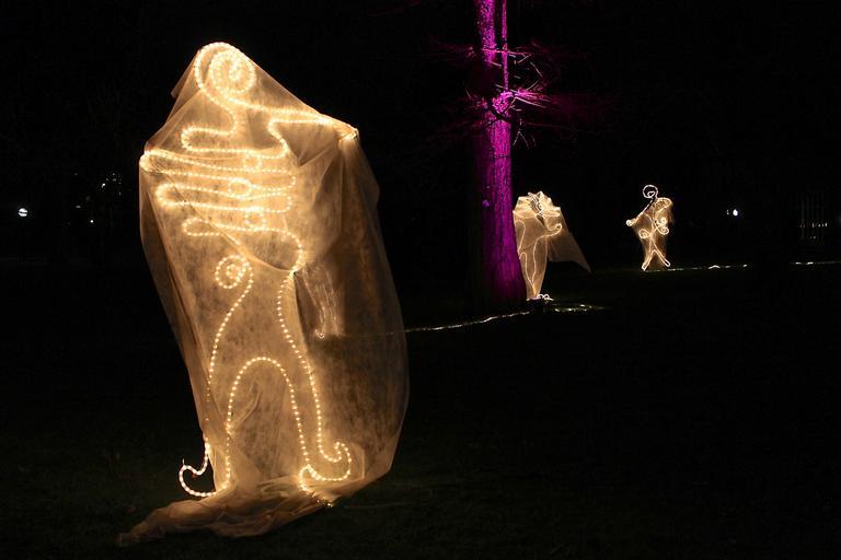 Keywords: ghost lights lichtgestalt winter lights palm garden light installation weird