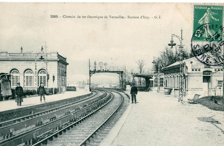 Keywords: GI 2069 - Chemin de fer électrique de Versailles - Station d'Issy.JPG Issy<br >On distingue clairement le troisième rail d'alimentation électrique Collection personnelle Scanné par Claude Shoshany Carte oblitérée le 27 aout 1907 Le cliché est nécessairement antérieur pd-old Gare d'Issy - Val de Seine Postcards of Issy-les-Moulineaux |