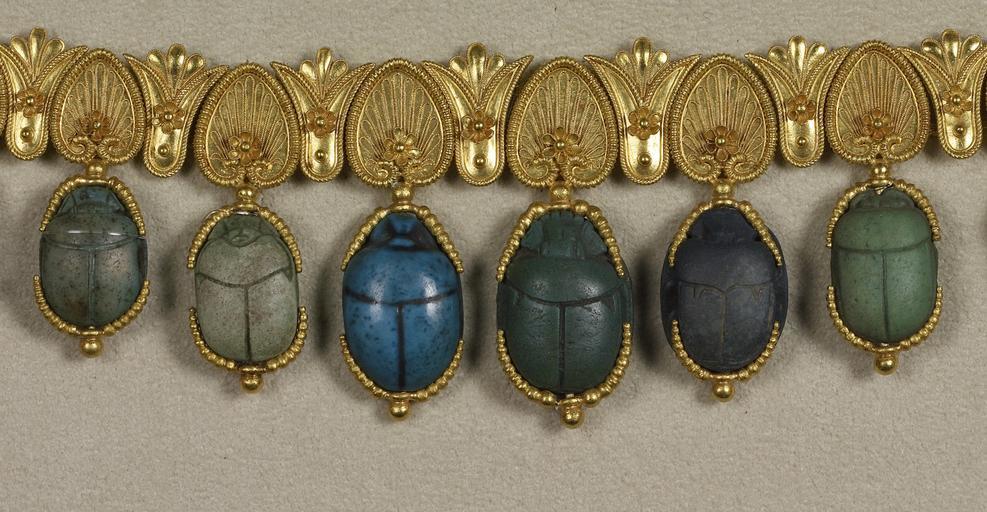 | Keywords: Giacinto Melillo - Egyptian-Style Necklace with Scarabs - Walters 571530 - Detail B.jpg Archaeological jewelry decorated with ancient and modern scarabs was popular in Europe during the second half of the 19th century The Castellani workshop was famous for its copies of ancient jewelry and this necklace has been attributed Giacinto Melillo one of Alessandro Castellani's apprentices and protégés this necklace bears his mark on the clasp He later took over Castellani's workshop in Naples which Henry Walters visited in 1903 late 19th-early 20th century gold steatite lapis lazuli cm 36 83 accession number 57 1530 4539 Henry Walters Baltimore 1903 mode of acquisition unknown Walters Art Museum Henry Walters Acquired by Henry Walters 1903 Inscribed on clasp G Melillo/Napoli Jewelry - Ancient to Modern The Walters Art Gallery Baltimore 1979-1980 Objects of Adornment Five Thousand Years of Jewelry from the Walters Art Gallery Baltimore Cooper-Hewitt National Design Museum New York; Chrysler Museum of Art Norfolk; Carnegie Museum of Art Pittsburgh; San Antonio Museum of Art San Antonio; Philbrook Museum of Art Tulsa; Honolulu Academy of Arts Honolulu; New Orleans Museum of Art New Orleans; Milwaukee Art Museum Milwaukee; Minneapolis Institute of Arts Minneapolis; Toledo Museum of Art Toledo; The John and Mable Ringling Museum of Art Sarasota 1984-1987 Jewelry from the Walters Art Museum and the Zucker Family Collection The Walters Art Gallery Baltimore 1987 Bedazzled 5 000 Years of Jewelry from the Walters Art Museum Frist Center for the Visual Arts Nashville; The John and Mable Ringling Museum of Art Sarasota; The Walters Art Museum Baltimore 2006-2009 Bedazzled 5 000 Years of Jewelry El Paso Museum of Art El Paso 2010 place of origin Naples Italy PD-old-auto 1915 Jewellery in the Walters Art Museum Giacinto Melillo Media contributed by the Walters Art Museum needs category review Media contributed by the Walters Art Museum needs artist update |
