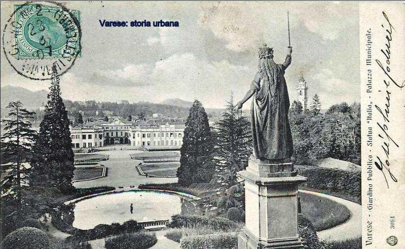 Keywords: Vista del parterre e delle fontana centrale dalla statua dell'Italia liberata posta sopra la fontana del "grottesco" (1767-69). varese giardinipubblici palazzoestense