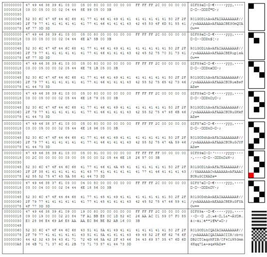 | Keywords: Gifs in txt and hex.gif This is an image displaying Gif-file patterns when opened in a text- or hex-editor Once made for my own study of direct manipulation of gif-files using Javascript Anybody is welcome to edit the image to add clarifications I assume displaying the internals of a gif-file does not infringe some patent After all anybody can open a gif-file in a text editor like opening the hood of a vehicle to study the engine I suppose this falls under the term reverse engineering Tristan Laurillard talk 20 52 9 December 2007 UTC Transferred from http //en wikipedia org en wikipedia; transferred to Commons by User Sreejithk2000 using http //tools wikimedia de/~magnus/commonshelper php CommonsHelper 2007-12-09 Original uploader was Harlekeyn at http //en wikipedia org en wikipedia Released into the public domain by the author en wikipedia Harlekeyn Original upload log page en wikipedia Gifs_in_txt_and_hex gif 2007-12-09 20 51 Harlekeyn 972×936× 70088 bytes <nowiki>This is an image displaying Gif-file patterns when opened in a text- or hex-editor Once made for my own study of direct manipulation of gif-files using Javascript Anybody is welcome to edit the image to add clarifications I assume displaying the inter</nowiki> GIF Uncategorized 2014 December 27 |