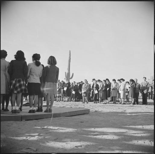 Keywords: Gila River Relocation Center, Rivers, Arizona. Sunrise Services (Christian) which were held at this . . . - NARA - 538611.jpg Scope and content The full caption for this photograph reads Gila River Relocation Center Rivers Arizona Sunrise Services Christian which were held at this center Thanksgiving day General notes 538611 Local identifier 210-G-D650 Department of the Interior War Relocation Authority 02/16/1944 - 06/30/1946 NARA-Author Stewart Francis War Relocation Authority photographer Photographer 8464475 <br /> Still Picture Records Section Special Media Archives Services Division NWCS-S National Archives at College Park 8601 Adelphi Road College Park MD 20740-6001 1942-11-26 Record group Record Group 210 Records of the War Relocation Authority 1941 - 1989 Record group ARC 537 Central Photographic File of the War Relocation Authority compiled 1942 - 1945 Series ARC 536000 File unit File unit ARC Variant control numbers NAIL Control Number NWDNS-210-G-D650 Other versions <gallery> File Gila_River_Relocation_Center _Rivers _Arizona _Sunrise_Services_ Christian _which_were_held_at_this_ _ _ _-_NARA_-_538611 tif tif File Gila_River_Relocation_Center _Rivers _Arizona _Sunrise_Services_ Christian _which_were_held_at_this_ _ _ _-_NARA_-_538611 jpg jpg </gallery> NARA-cooperation PD-USGov Gila River War Relocation Center