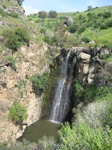 Keywords: Gilbon River waterfall rainbow.jpg en Rainbow over Gilbon River waterfall Golan Heights Own Itai 2009-04-11 Waterfalls in Gilbon River Waterfall spray rainbows