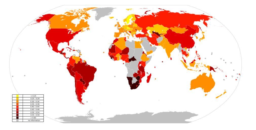 | Keywords: Gini Coefficient World CIA Report.svg en Based on statistics published by the CIA Not all countries are up-to-date https //www cia gov/library/publications/the-world-factbook/fields/2172 html 2014-07-12 18 05 49 own Kurzon cc-zero Uploaded with UploadWizard Gini coefficient maps of the world |