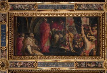 Keywords: Giorgio Vasari - Clemente IV hands his insigna to the captains of the Guelph Part - Google Art Project.jpg special url_id GwFPrWljp_b0dw PD-old-100-1923 1574 Salone dei Cinquecento - Vasari's paintings Google Art Project works by Giorgio Vasari Salone dei Cinquecento - Ceiling Clemens IV