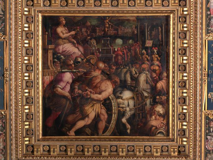 Keywords: Giorgio Vasari - Triumph after the victory on Pisa - Google Art Project.jpg special url_id wwGzQ0fBILr0ag PD-old-100-1923 1574 Salone dei Cinquecento - Vasari's paintings Google Art Project works by Giorgio Vasari Salone dei Cinquecento - Ceiling History of Florence History of Pisa