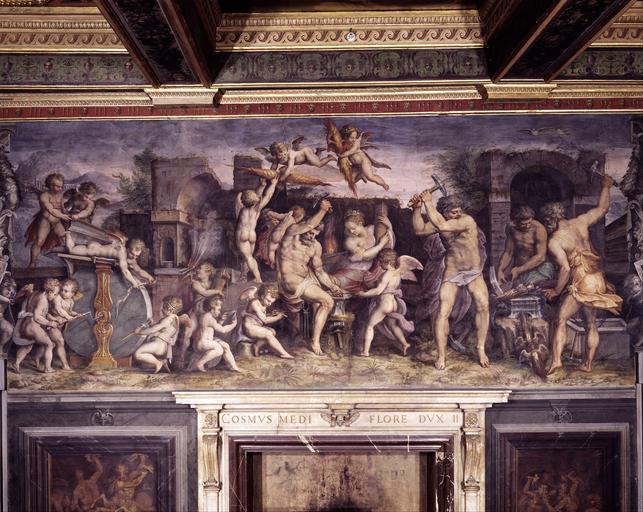 Keywords: Giorgio Vasari - Volcano's forge - Google Art Project.jpg fresco 1511 Arezzo 1511 1574 Firenze 1574 Giorgio Male 27413413 Vasari Italian 1511 - 1574 /collection/palazzo-vecchio-museum/artwork/volcanos-forge-giorgio-vasari/27462053/ 68 Giorgio Vasari painter /artist/giorgio-vasari/4130254/ 4130254 /collection/palazzo-vecchio-museum/ Palazzo Vecchio Museum 27389510 http //www museicivicifiorentini it/en/palazzovecchio /collection/palazzo-vecchio-museum/artwork/volcanos-forge-giorgio-vasari/27462053/ 1555 Mannerism Mythological subject 285 27462053 False 1557 /collection/palazzo-vecchio-museum/level/second-floor/27444198/ Second floor Complete 1166 Comune di Firenze painting 1550 1560 w648 x h285 cm 1555 - 1557 False 1 25798525798526 Comune di Firenze Object /collection/palazzo-vecchio-museum/level/second-floor/27444198/the-room-of-the-elements/27435409/ The Room of the Elements volcanos-forge-giorgio-vasari Volcano's forge v 648 Mannerism Mythological subject special url_id 9QETGyR9e-iAiQ PD-old-100-1923 1574 Paintings by Giorgio Vasari Google Art Project works by Giorgio Vasari Palazzo Vecchio - Sala degli Elementi - Fire Forge of Vulcan Paintings of blacksmiths