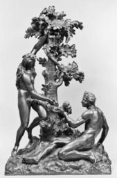 | Keywords: Giovanni Battista Foggini - The Fall of Man - Walters 54676.jpg Adam and Eve the first humans are depicted at the moment of their transgression which led to their expulsion from Eden Spurred on by the serpent Eve hands Adam an apple from the tree of the knowledge of good and evil The monkey an animal known for its lustfulness indicates their folly The bodies of Adam and Eve are arranged in graceful curves that draw them together around the central axis of the tree The representation of a leafy tree a motif associated with landscape painting is a striking example of a 17th-century sculptor challenging the limits of his medium in the pursuit of naturalism ca 1650 1700 bronze cm 60 7 accession number 54 676 21754 Marcus Antocolsky Paris by purchase Sale Hotel Drouot Paris June 10 1901 number unknown Madame C Lelong Paris by purchase Sale Paris April 30 1903 no 301 Henry Walters Baltimore 1903 mode of acquisition unknown Walters Art Museum Henry Walters Acquired by Henry Walters 1903 place of origin Florence Italy Walters Art Museum license Baroque sculpture in the Walters Art Museum Giovanni Battista Foggini Temptation of Adam and Eve Media contributed by the Walters Art Museum needs category review Media contributed by the Walters Art Museum needs artist update Statues of monkeys |