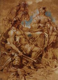 Keywords: Giovanni Benedetto Castiglione - Allegory in Honour of the Ruling Couple of Mantua - Google Art Project.jpg brush with brown and black ink red-brown light blue and white oil paint on yellow prepared paper Esterházy Collection acquired in 1870 special url_id hgEfrRwHT_R8jQ PD-old-100-1923 1664 Giovanni Benedetto Castiglione Google Art Project works by Giovanni Benedetto Castiglione Italian paintings in the Museum of Fine Arts Budapest |