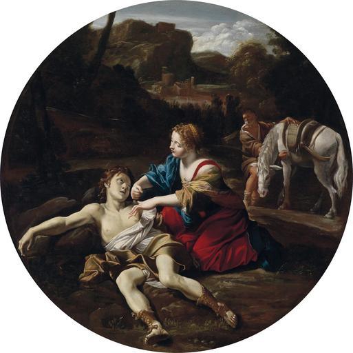Keywords: Giovanni Lanfranco Angelica pflegt Medoro.jpg Angelica pflegt Medoro oil on canvas Tondo cm 110 6 object history 1680 Kardinal Pietro Mellini Rom 1692 Kardinal Savio Mellini Rom 1697-1756 Mario und Nicola Mellini Rom by 2011 Private collection 2011 Auktion Dorotheum Wien http //www dorotheum com by 1647 Creator Giovanni Lanfranco PD-old-100 Giovanni Lanfranco Angelica pflegt Medoro Angelica and Medor Round paintings 1647 paintings Pietro Mellini cardinal Savio Mellini Nicola Mellini Mellini Collection Baroque paintings of mythology 1640s mythological paintings 17th-century paintings in unidentified private collections 1640s paintings from Italy Mythological figures in nature Paintings of people in nature Images from Dorotheum 1640s landscape paintings Baroque paintings in private collections Paintings of couples sitting on the ground outdoors People with horses in art Tondo |