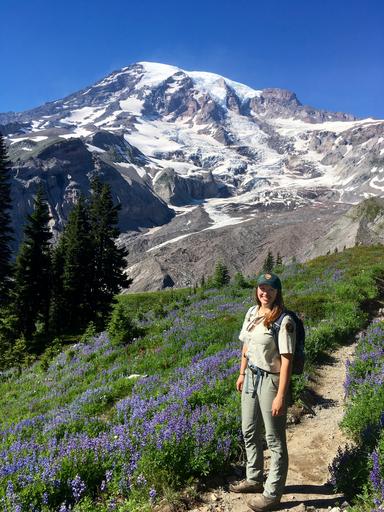 Keywords: national park service nationalparkservice interns youth programs youthprograms gip geoscientists-in-the-parks geoscientistsintheparks landscape outdoor mountain hill mountainside ridge grassland field mountain ridge Megan Thompson-Munson at Mount Rainier National Park, Washington. NPS photo Megan Thompson-Munson at Mount Rainier National Park, Washington. NPS photo |