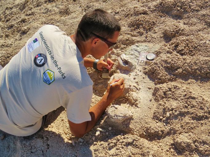 Keywords: national park service nationalparkservice interns youth programs youthprograms gip geoscientists-in-the-parks geoscientistsintheparks outdoor GIP intern Grady Hart at Badlands National Park, South Dakota. NPS photo GIP intern Grady Hart at Badlands National Park, South Dakota. NPS photo |