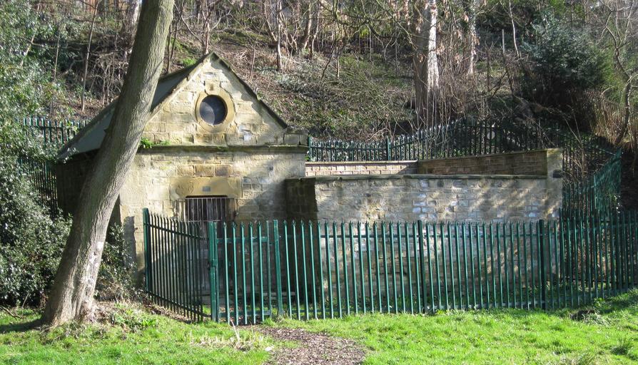 | Keywords: GiptonSpa02.jpg en Gipton Spa Bathhouse in Gledhow Woods Leeds UK Sign over door reads This Bathhouse was built in 1671 Ice-cold water from a near-by spring was conducted here to a sunken bath Also inside was a small fireplace to sweat the patients after bathing Own Chemical Engineer 2009-03-05 53 8219 -1 5160 1670s architecture in the United Kingdom Spas in England Springs of England Buildings in Leeds | ||||