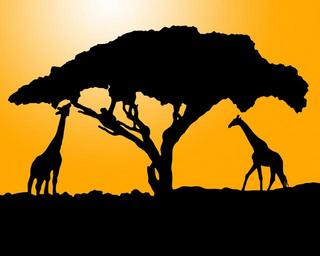 Keywords: giraffe giraffes animal animals africa black silhouette sunrise sunset orange eating art shape outline beautiful