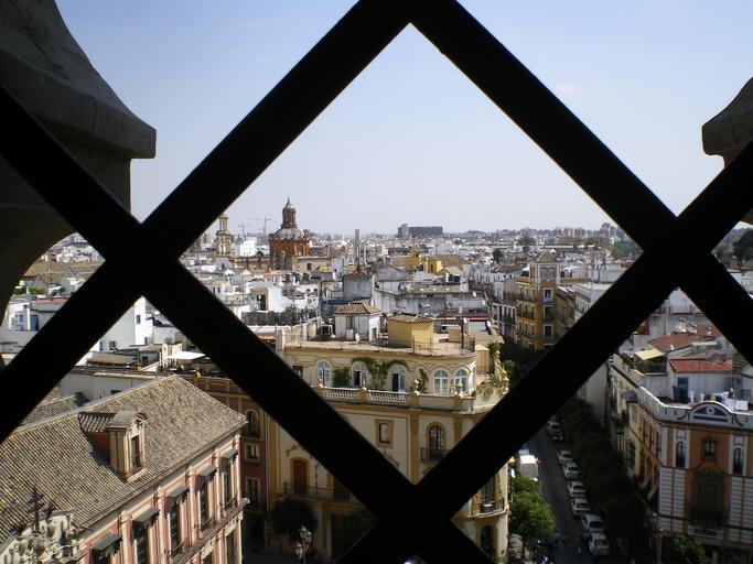 Keywords: giralda views seville cathedral spain tower architecture andalusia window grating