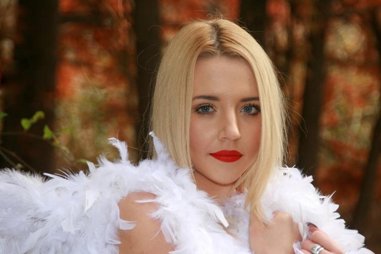 Keywords: girl angel autumn wings leaves red white blonde beauty paradise forest tree