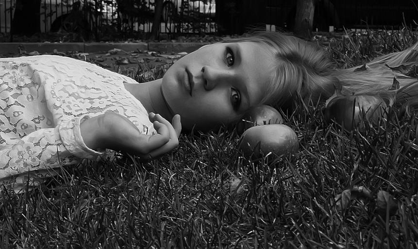 Keywords: girl apples girls garden leaves grass view eyes hair